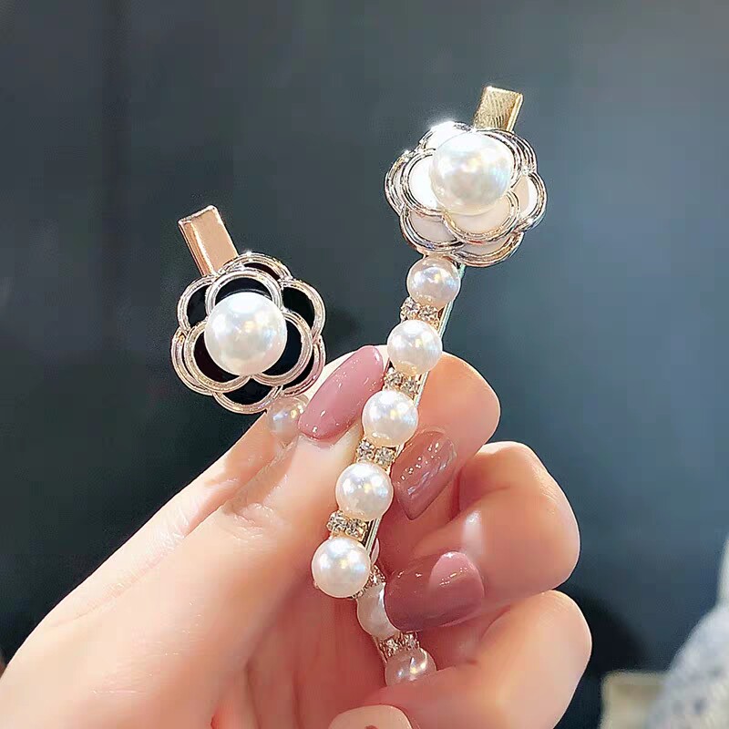 South Korea Ins Pearl Mountain Tea Flower Blossom Side Clip Retro Hair Clip Hair Clip Duckbill Clip and Hairpin Hairpin Accessories Hair Accessories