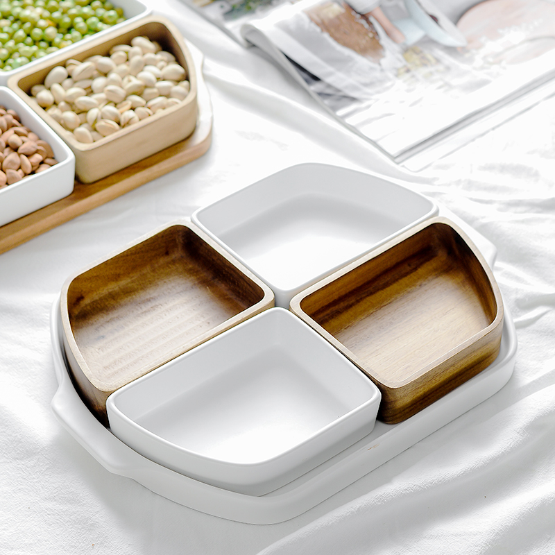 Nordic Style Nut Tray Ceramic Sub-Pan Snack Pan Dried Fruit Snack Dish for New Year Home Candy Pan
