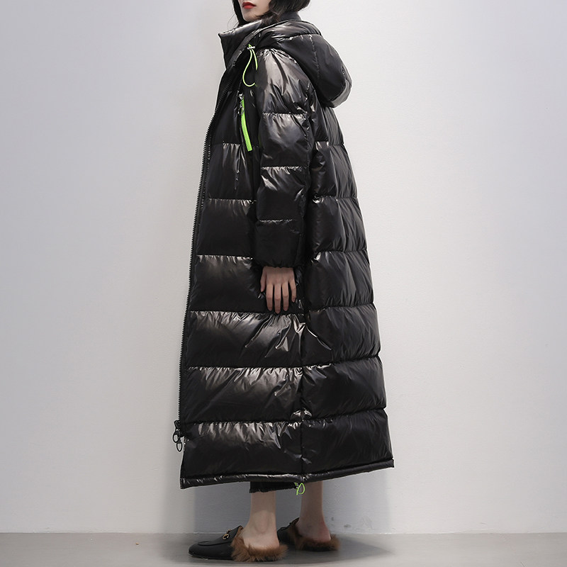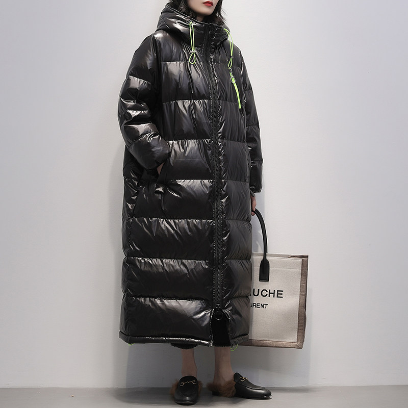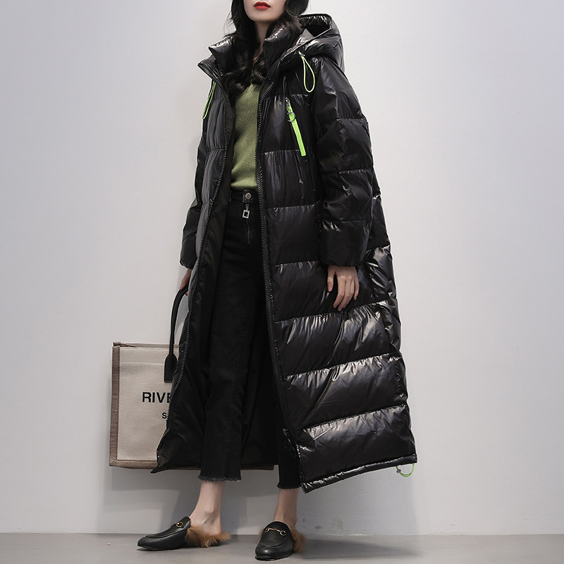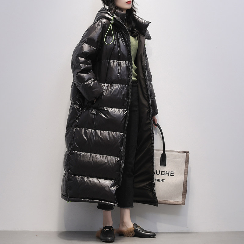 2022 winter new Korean version of the black hooded fashion is thin and shiny over the knee long down jacket women's thick coat