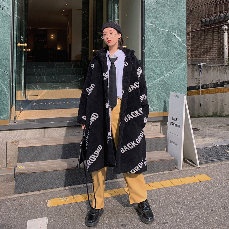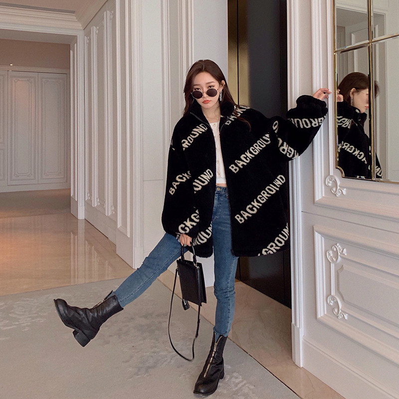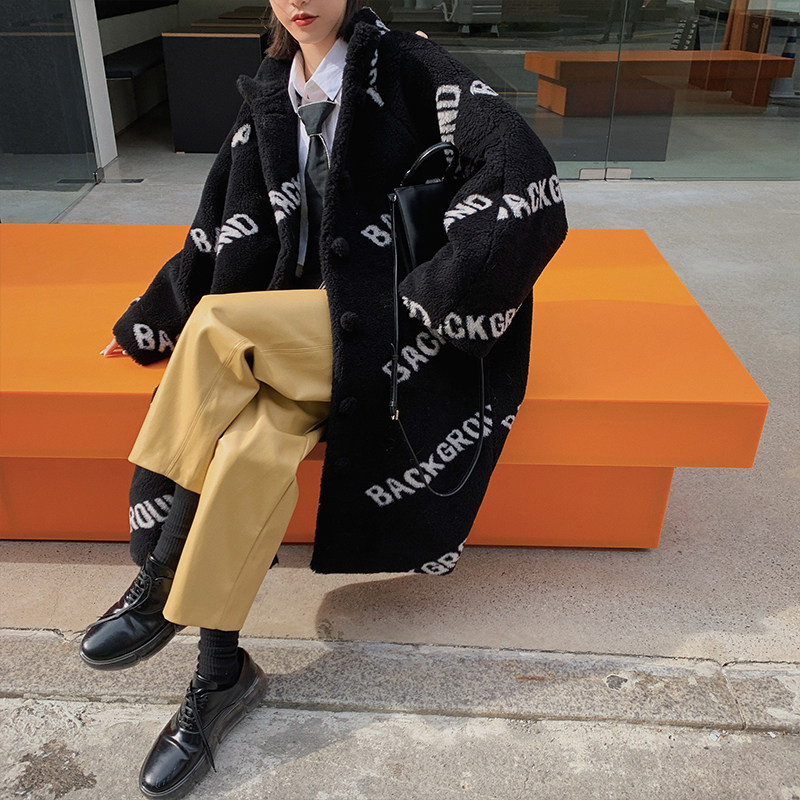 COCO LIMITED "letter towel" long and short imported sheep sheared woven wool fur coat