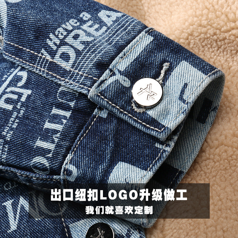Plus velvet thick handsome autumn and winter new retro loose casual top motorcycle large size jacket denim jacket men