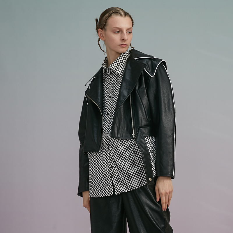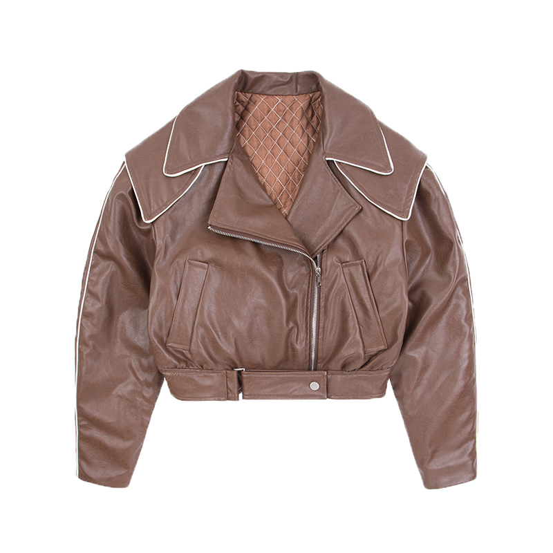 DIDDI MODA Original design Short-style retro-laminated cotton leather jacket Female plus cotton locomotive clothes 2021 autumn and winter