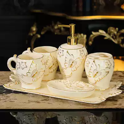 European style bathroom five-piece set wash set ceramic creative light luxury brushing brush mouthwash cup dressing room bathroom supplies