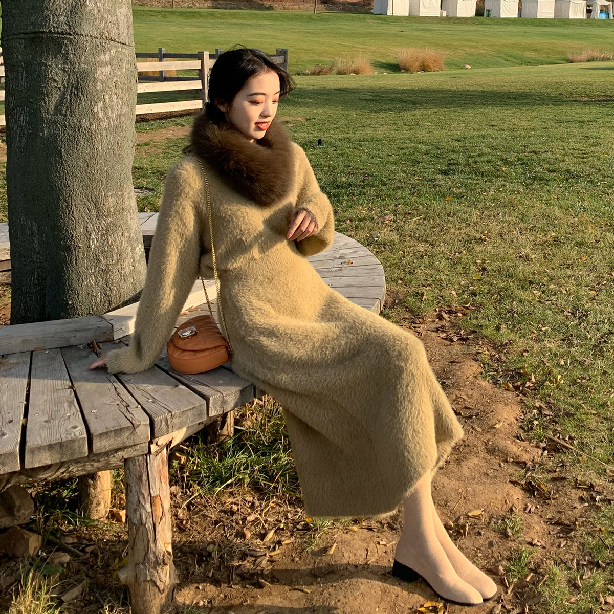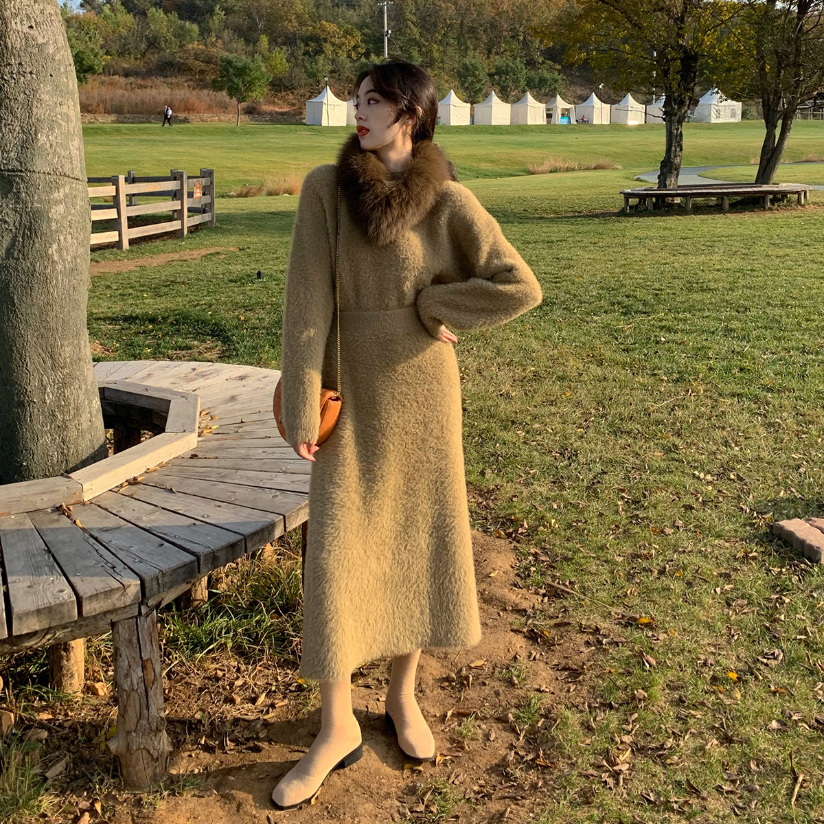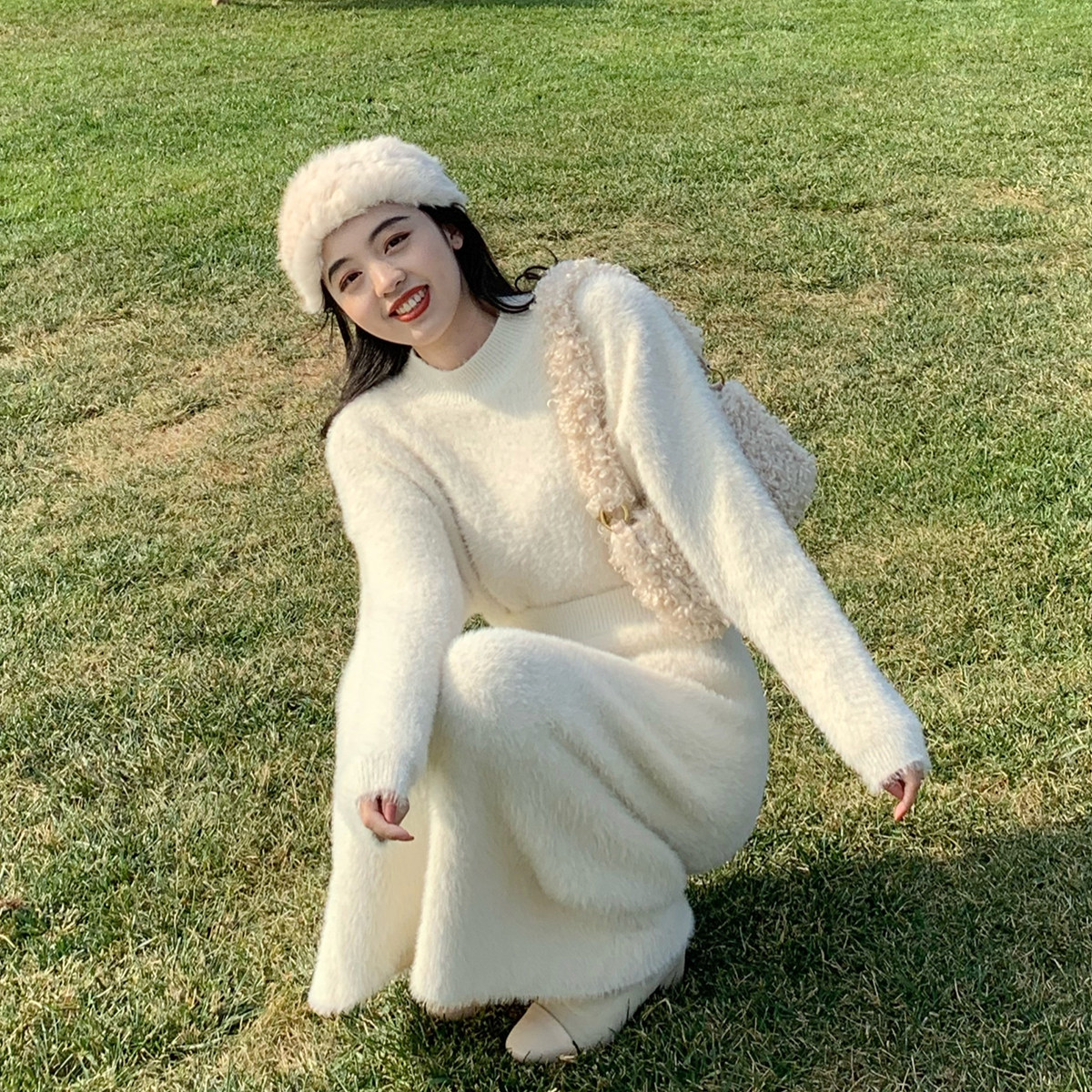 SYT gentle little man autumn and winter suit women's imitation mink fleece sweater skirt two-piece knitted dress