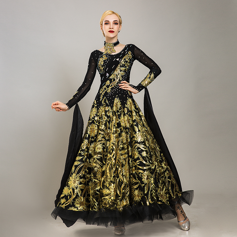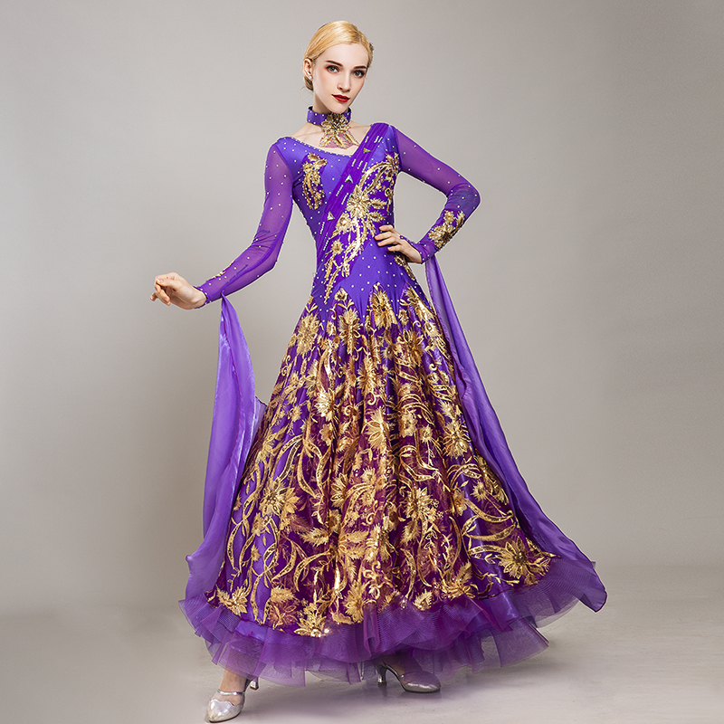 Peng Yue 2022 Spring Summer New Morden Dance Foreign Dress Manual Scalding National Mark Race Suit Social Dance Out of the Costume