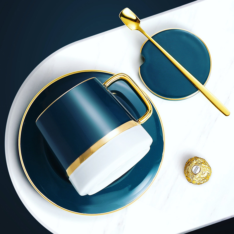 European family cup set creative home ceramic cup coffee mug upscale cup saucer small luxury