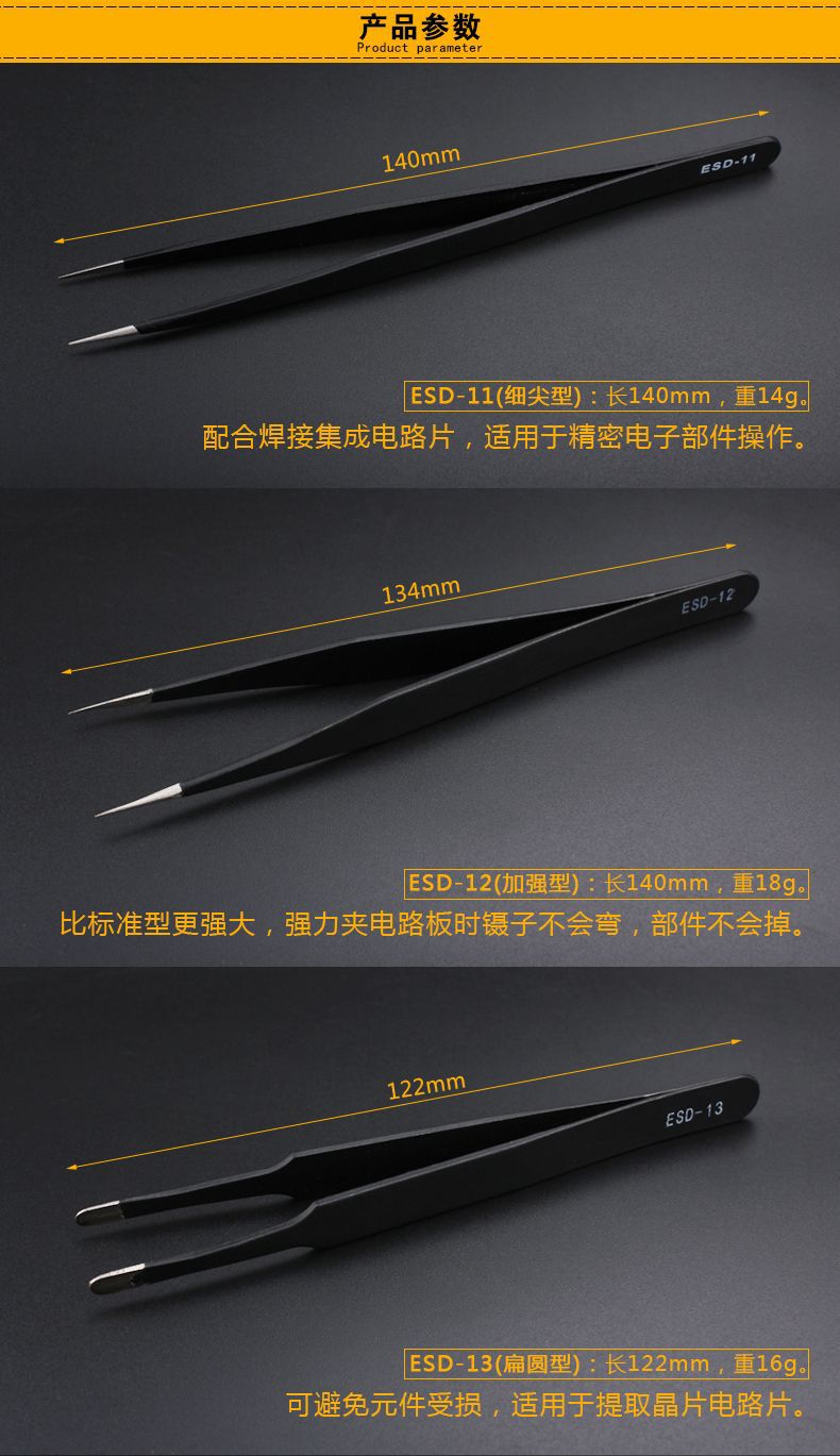 ESD stainless steel tweezers set pointed mouth anti-static tweezers straight head tweezers round head eyelash tweezers