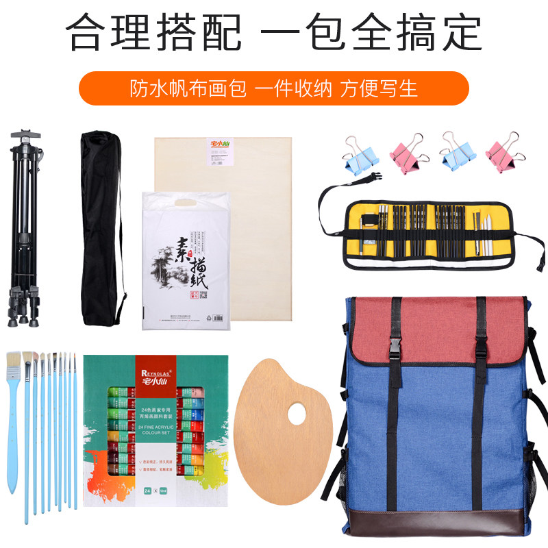 Drawing board easel sketching suit portable sketching multi-piece set of suit sketch folding multifunction picture frame drawing board suit wooden painting with bracket art 4K wooden drawing board drawing frame sketching board bag