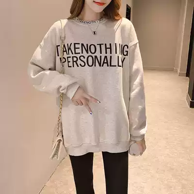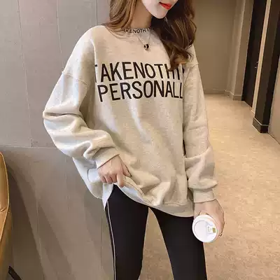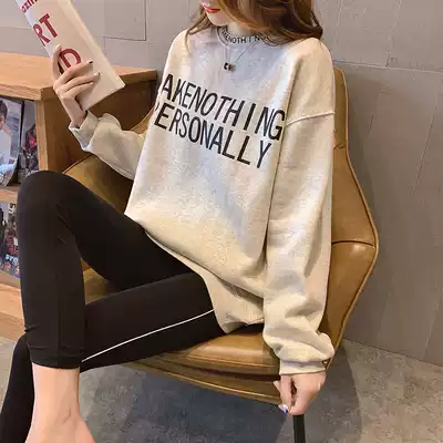 Hong Kong long sleeve thick cotton T female 2019 new autumn winter thin Korean version of long loose Super fire round neck coat coat tide