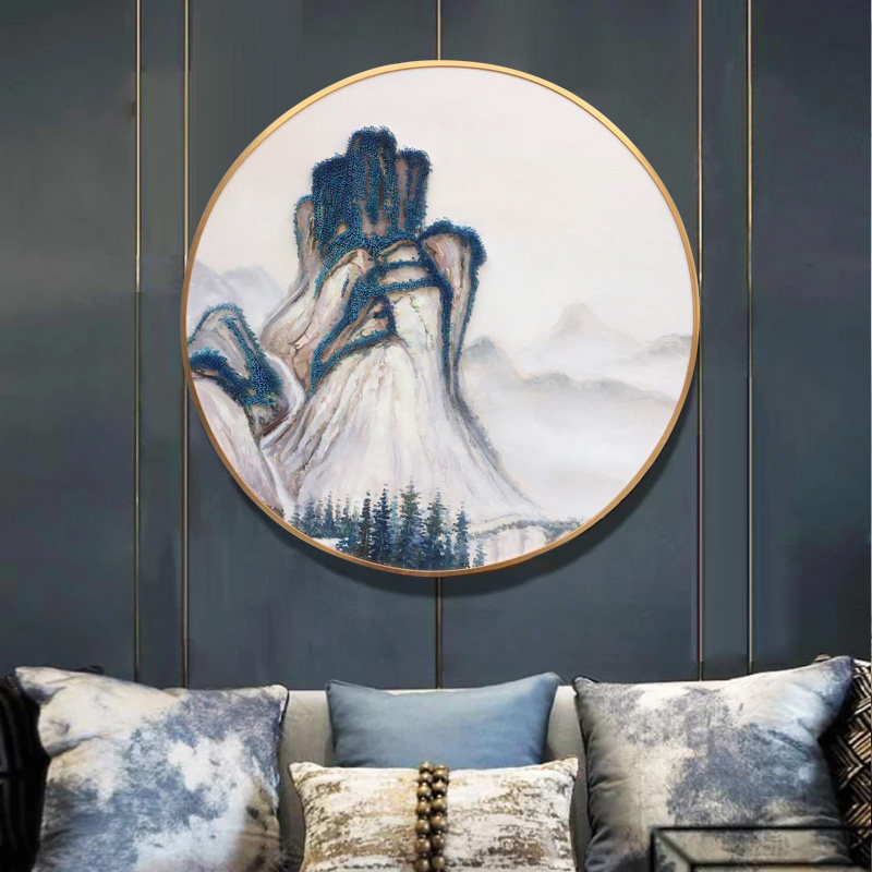 New Chinese Living Room Decoration Painting Circular Hallway Xuanguan Background Wall Mural Painting Landscape Painting China Wind Meditation Custom