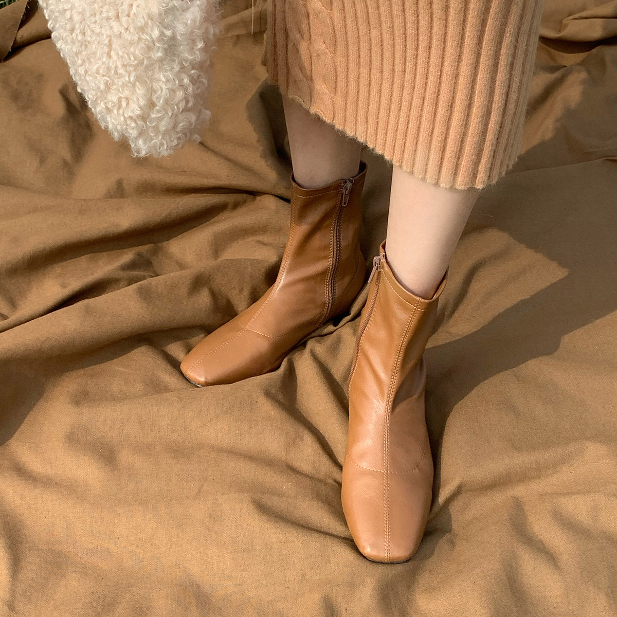 SYT Short Boots Woman Autumn Winter 2021 New Cortical Soft Coarse Heel Slim Boots Low Heel height 100 hitch Martin boot