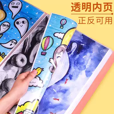 A3 Poster storage book Picture book Favorites Picture folder Works collection book Drawings and paintings Art information book Transparent fan paging folder Star painting loose-leaf painting bag Children save paintings