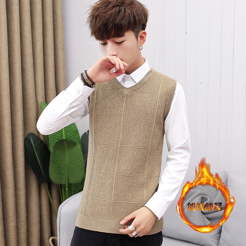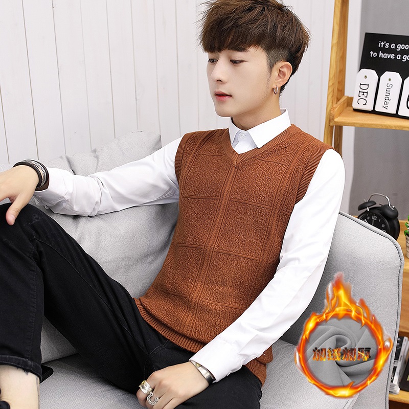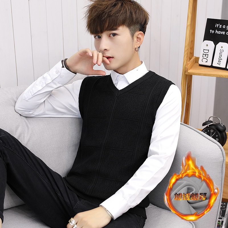 Sleeveless sweater men's winter style men's sunshine wear vest plus velvet thick short-sleeved t-shirt sweater half-sleeve vest