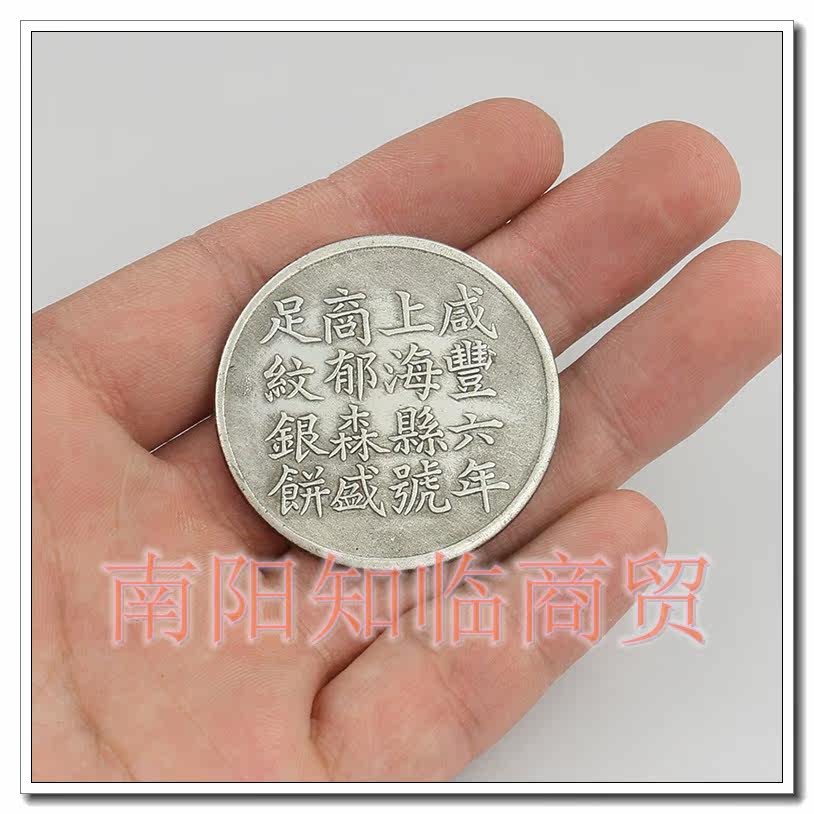 Antique made old brass silver plated silver round silver Yuan Xianfeng Six years Shanghai County Number of silver coins Ocean Ancient Play