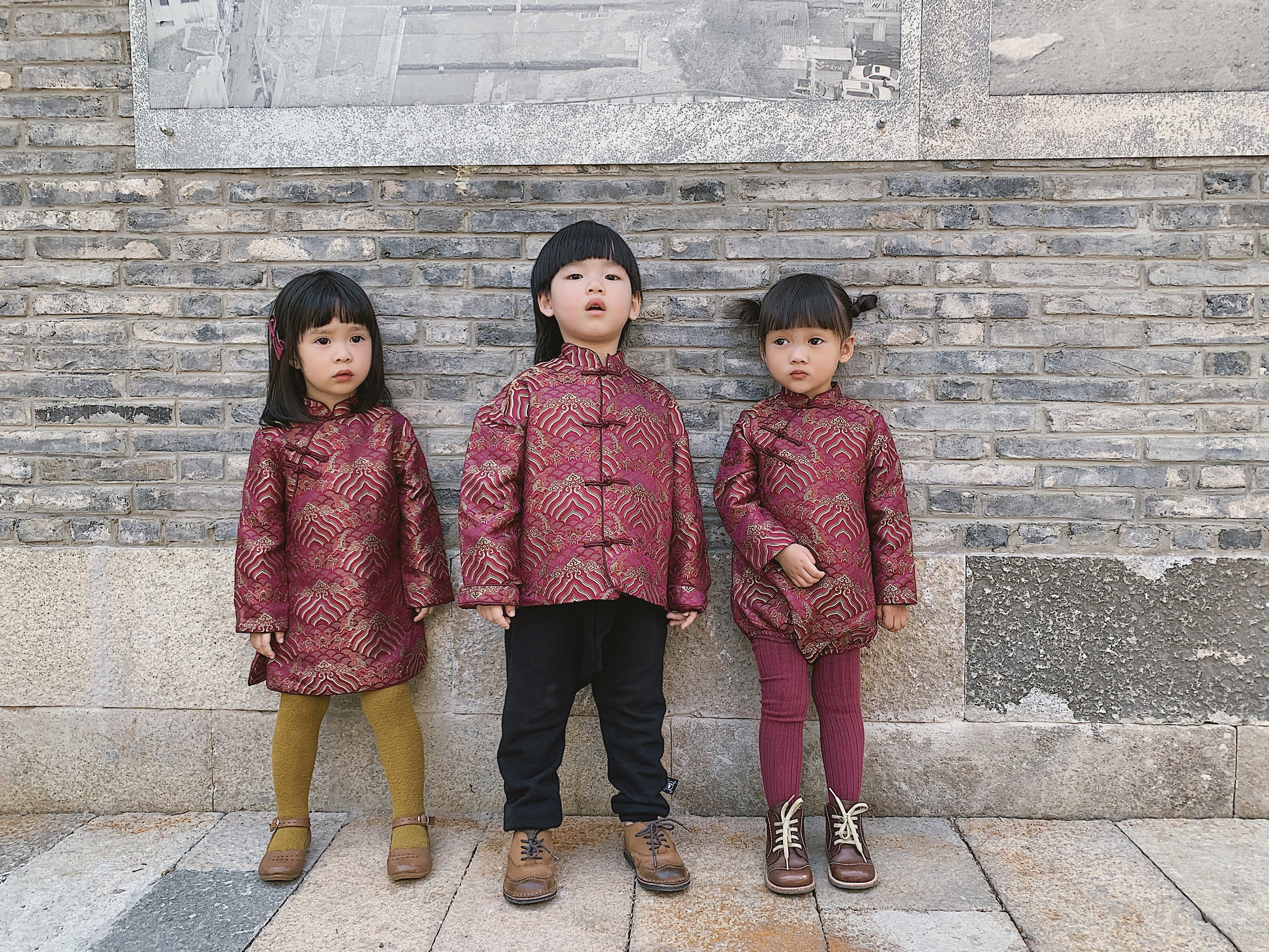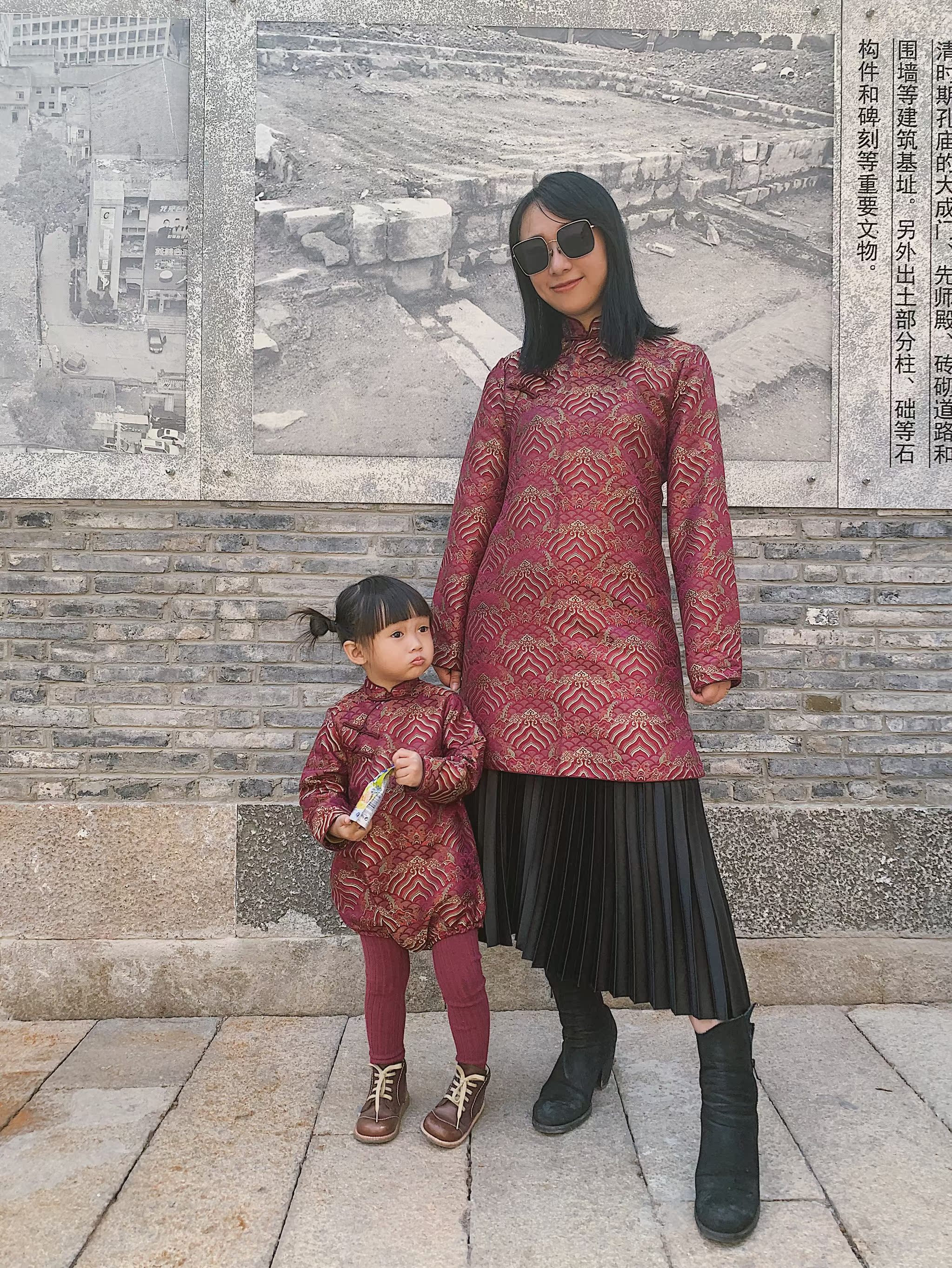 RHC parent-child silk modified off-shoulder Tang cardigan Cheongsam skirt Parent-child New Year suit without cotton