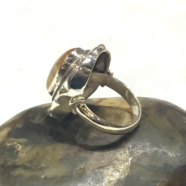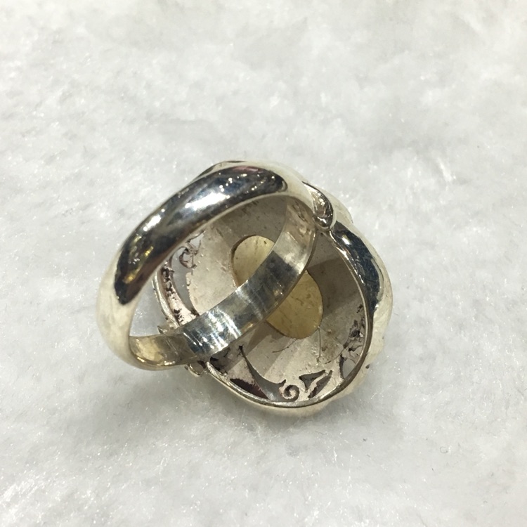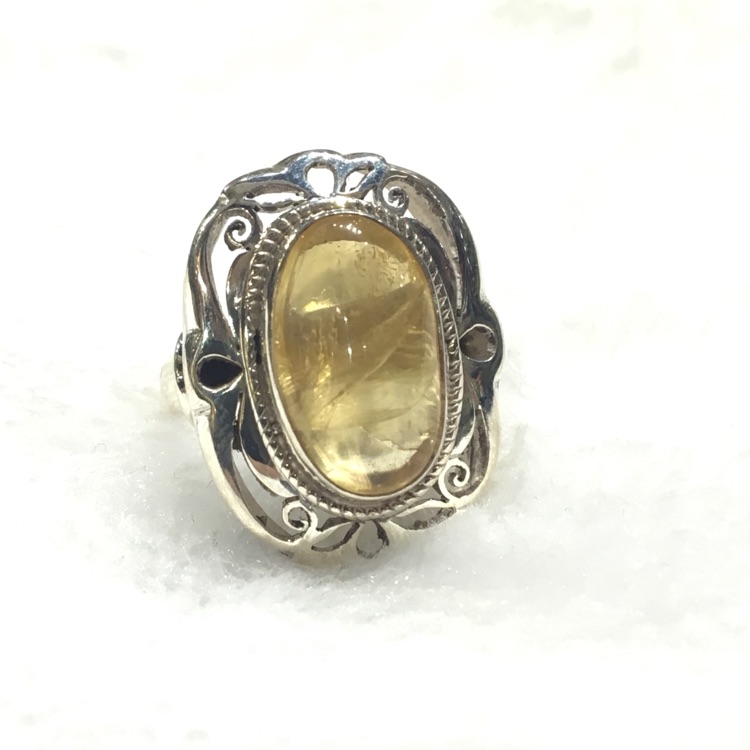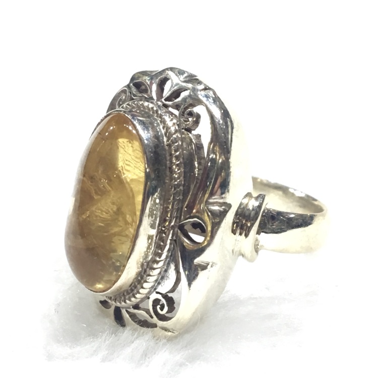 Nepal handmade silver ornament 925 pure silver inlaid with bejeweles yellow gem female ring finger Tibetan decoration