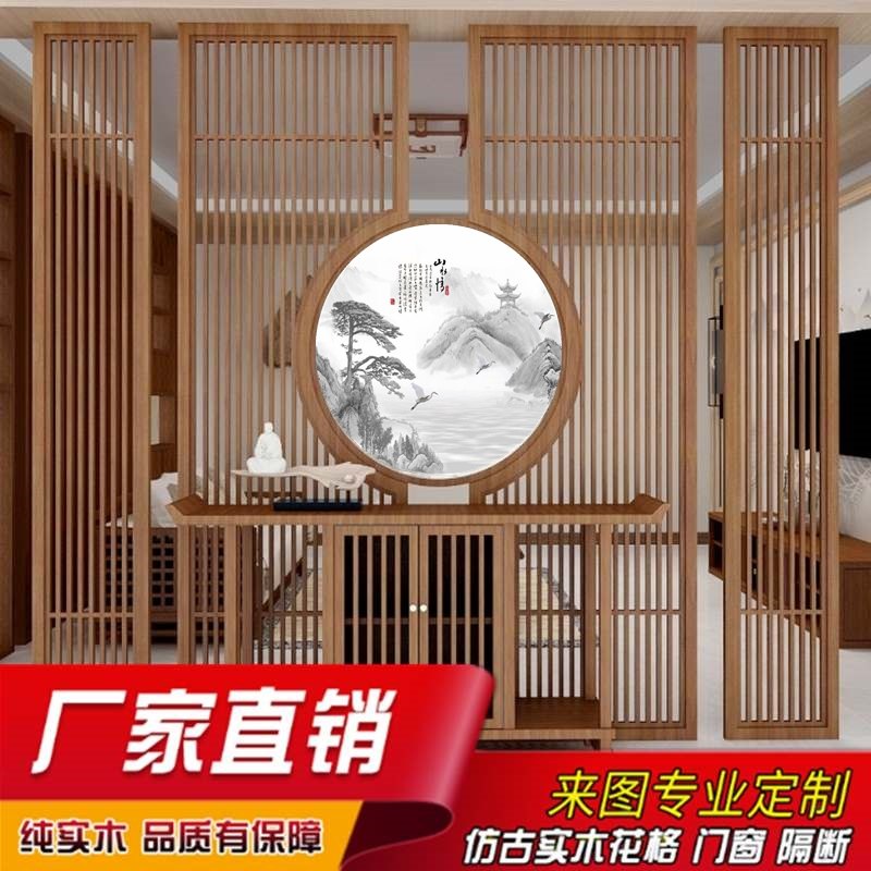Solid wood antique doors and windows mortise and lattice lattice partition entrance living room ceiling decoration background new Chinese-style screen
