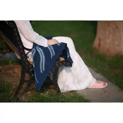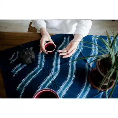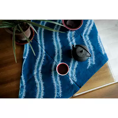 Blue Continued Bai ancient method tie-dye combined with feather shawl tablecloth TV background wall decoration pure natural plant dyeing