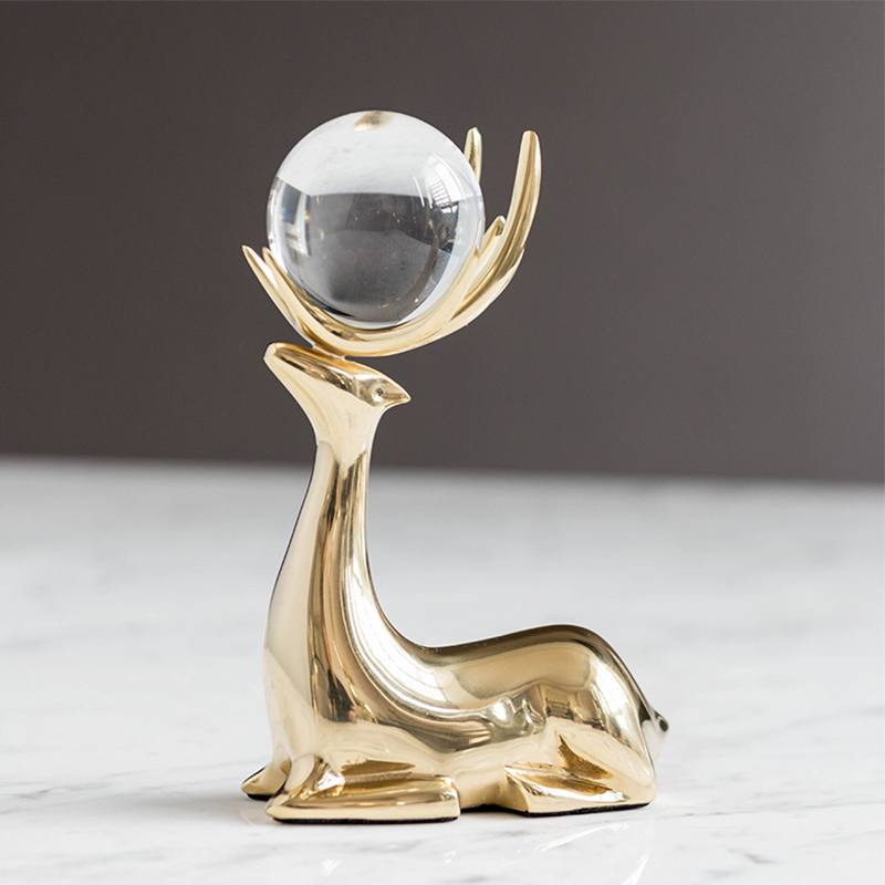 Light luxury crystal ball pure copper deer ornaments home decoration living room wine cabinet modern minimalist model room soft decoration