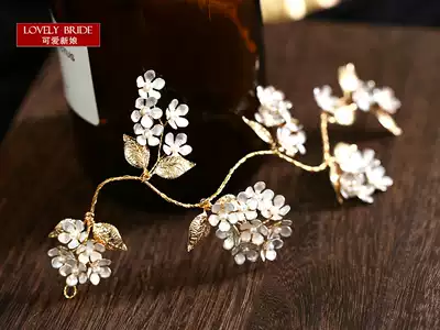 Handmade alloy flower golden hair hoop leaf Korean hair side clip European and American temperament beautiful bride wedding headdress