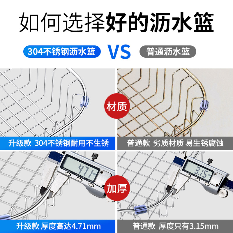 Sink dish chopsticks drain rack Kitchen 304 stainless steel drain basket Sink storage storage layer shelf vegetable basket