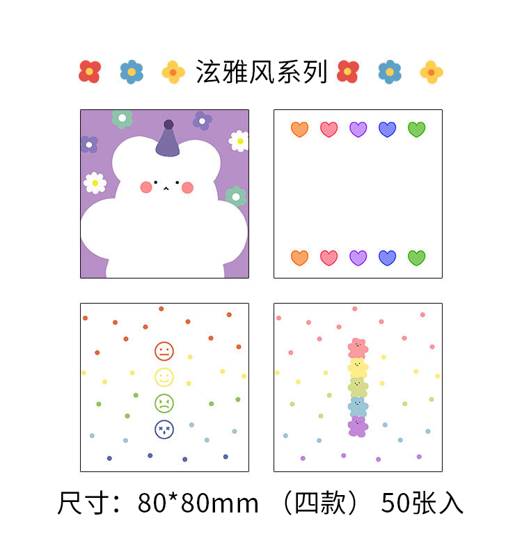 Elegant Wind Small Flowers Candy Bear Convenience Stickers Creative Stationery Note Cute Cartoon Convenience Stickup Bento Can Tear No Stickiness