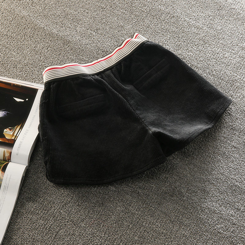 Shorts women autumn and winter high waist loose fashion new Korean version black shorts wide leg casual pants corduroy boots pants