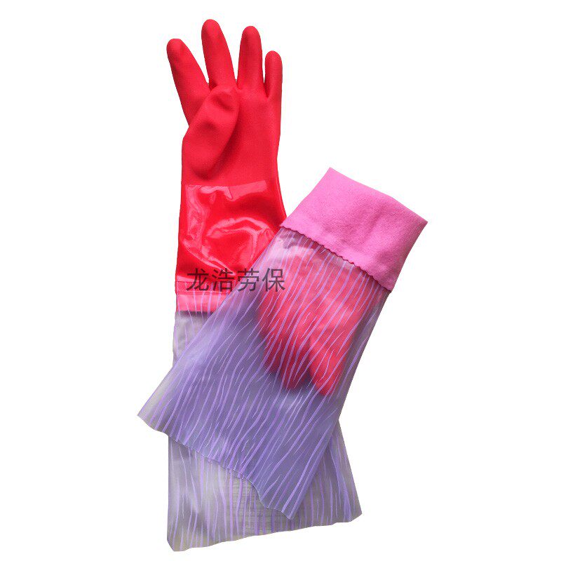 East Asia household PVC warm and sleeved gloves to stretch waterproof wear and thickness wash dishwash rubber leather hands