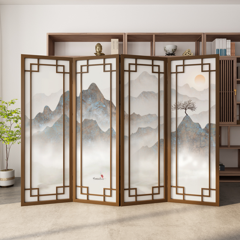 New Chinese entry Xuanguan Screen partition wall Living room In-door bedroom Folding Mobile Light Lavish Solid Wood Shelter Home