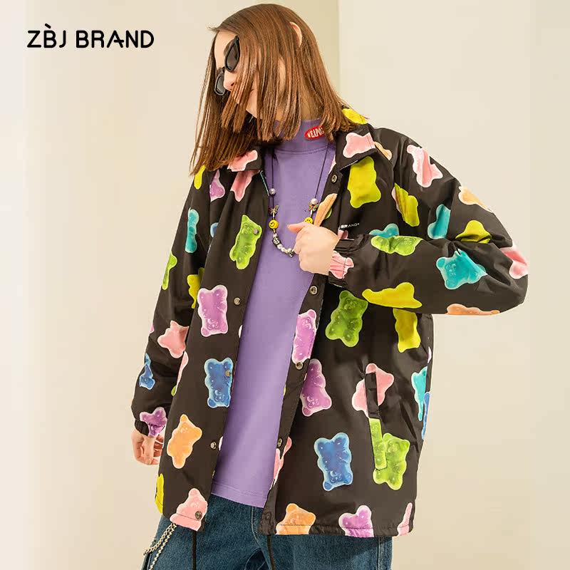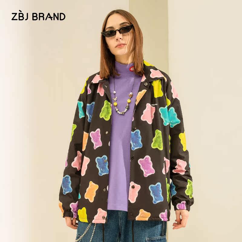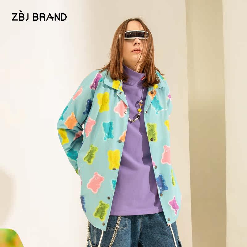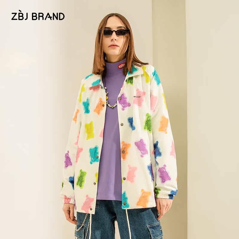 ZBJ bear gummy printed jacket 2019 new autumn national tide jacket men's and women's loose jacket casual top