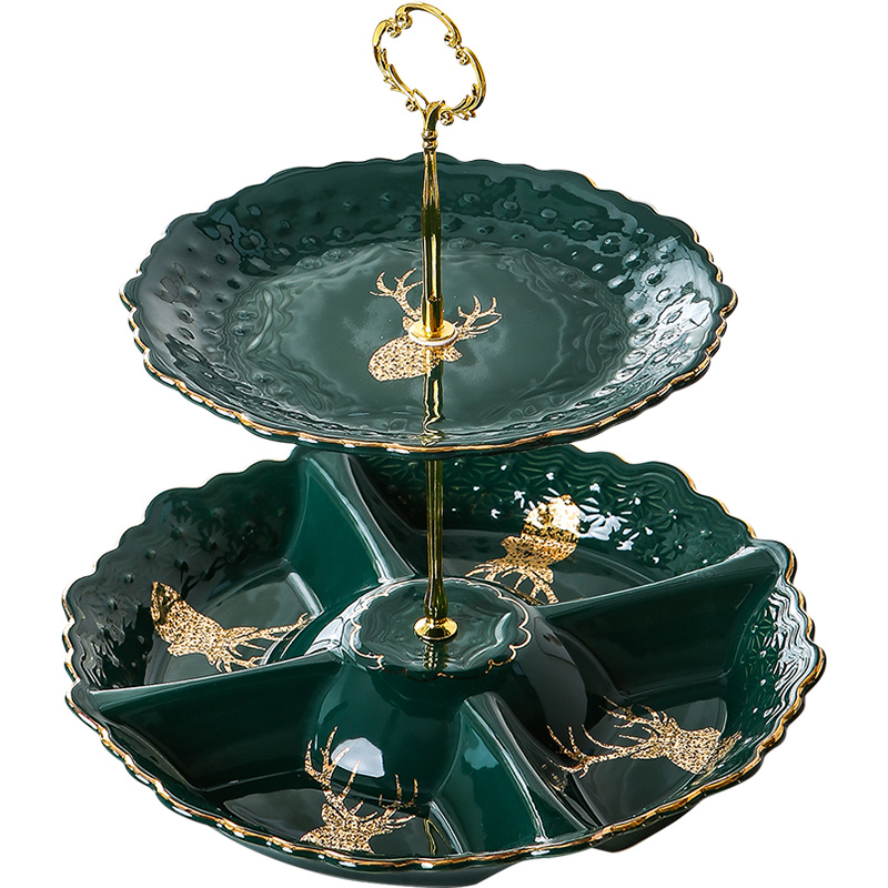 Double Layer Fruit Pan American Light Lavish Home Living Room Tea Table Personality Creative Eurostyle Dried Fruit Count Heart Tray Candy Tray
