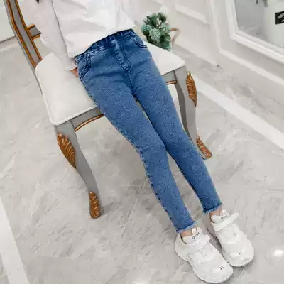 Girls jeans 2020 spring and autumn new middle and large children's Korean version of stretch slim-fit cigarette tube pants girls one-piece velvet pants