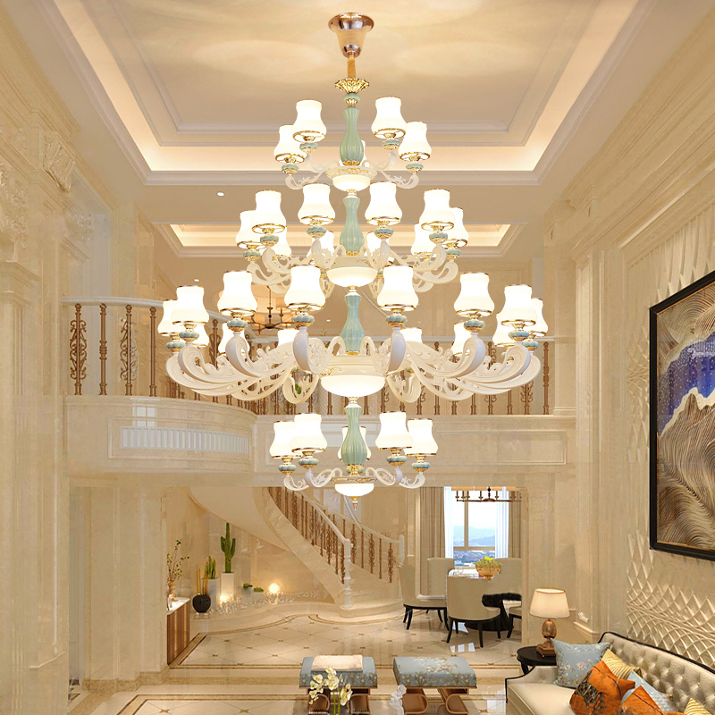 Eurostyle American Living Room duplex House Villa Hotel Lobby Living-room Light Crystal Pendant Luminaire Pharatrium Large Chandelia