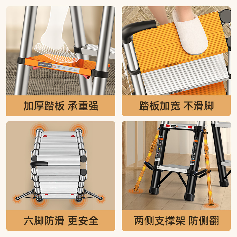 Aopeng household multi-function telescopic ladder Indoor herringbone ladder Aluminum alloy thickened lifting folding shrinking small stairs