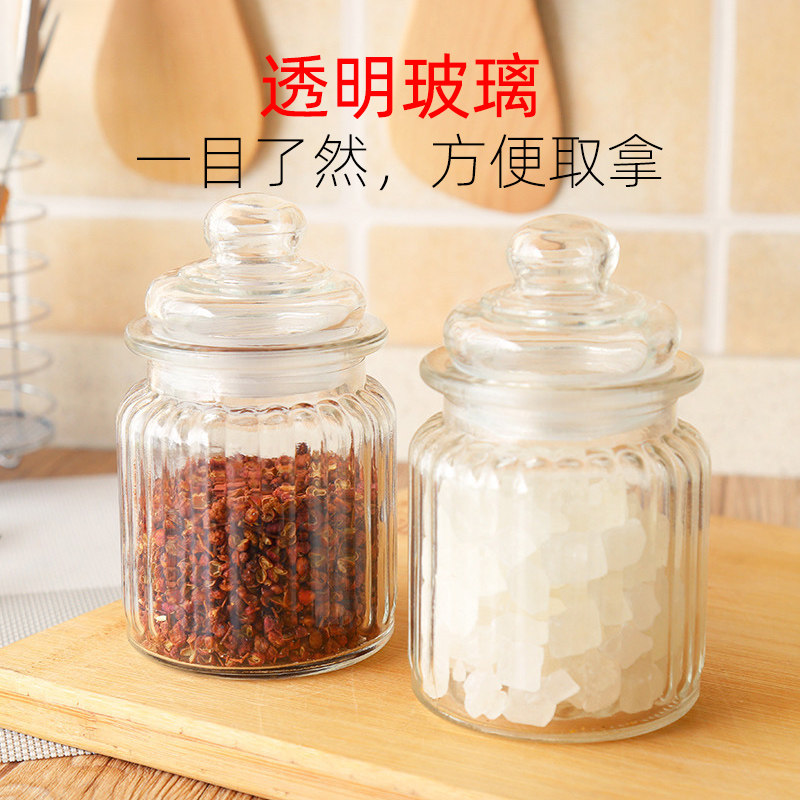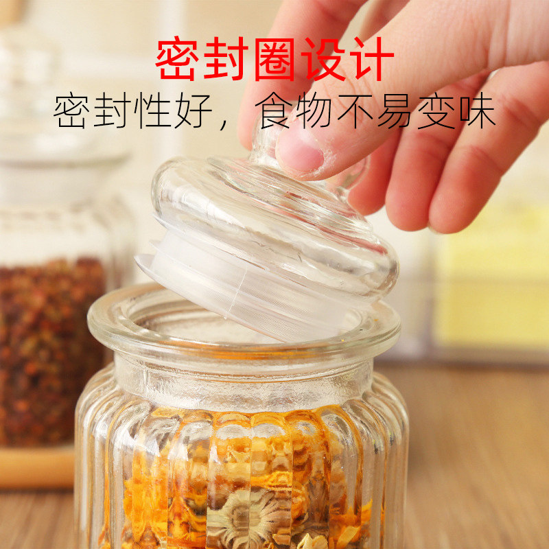 Kitchen glass sealed cans vertical striped food seasoning glass tea cans glass jam bottle storage tank