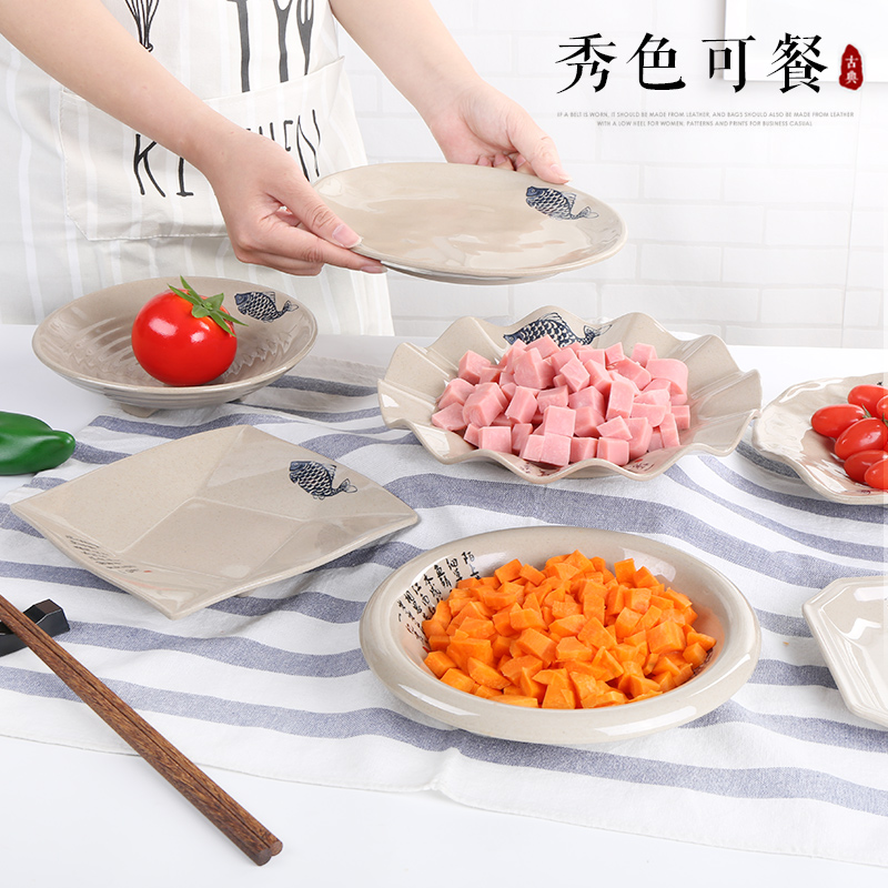 Dense Amines Imitation Porcelain Round Plate Fire Pot Shop Hotel Dining Room Commercial Cutlery Home Square Creative Plate Buffet