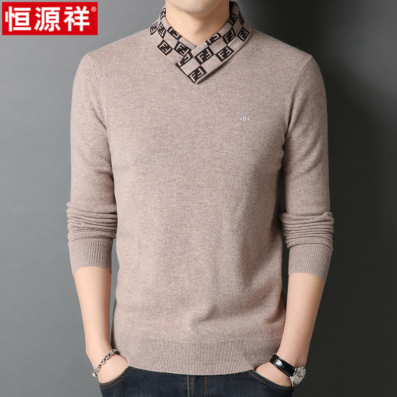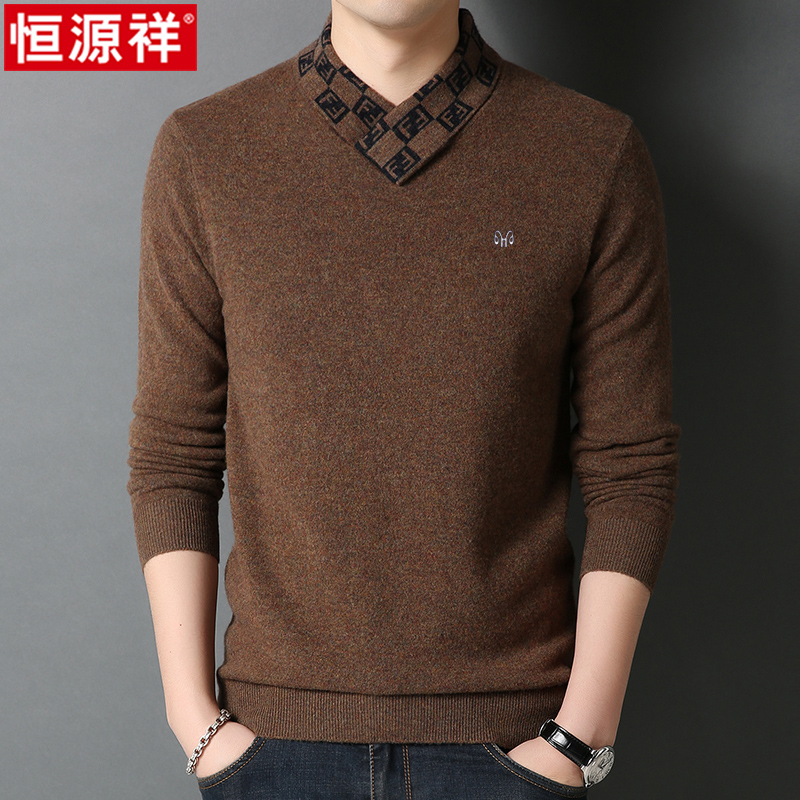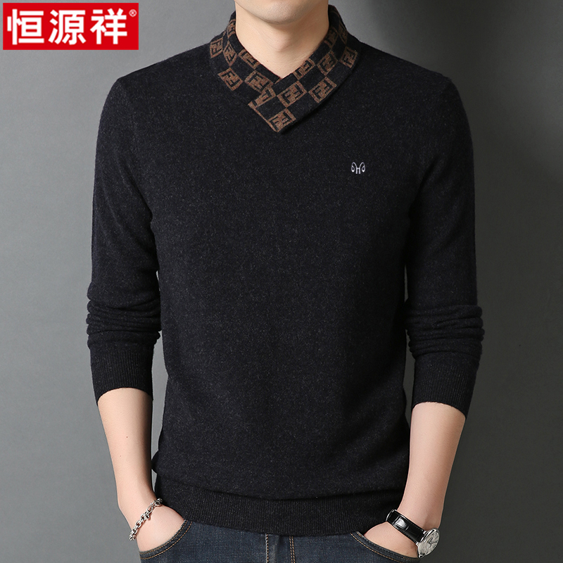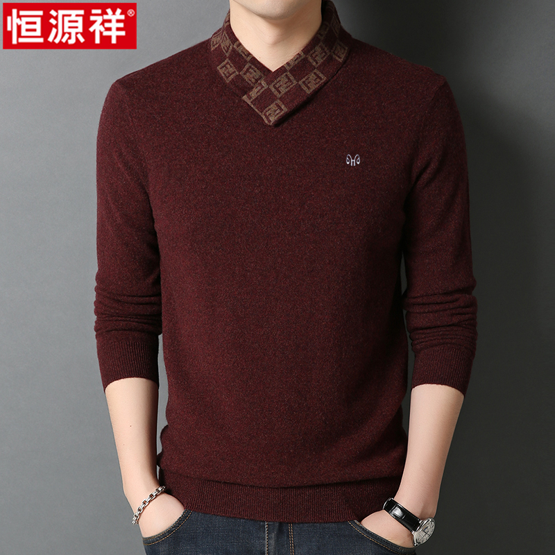 Constant source Xiang sweater male V collar with wool warm and gush thickened blouses middle-aged men loose base-knitted sweatshirt