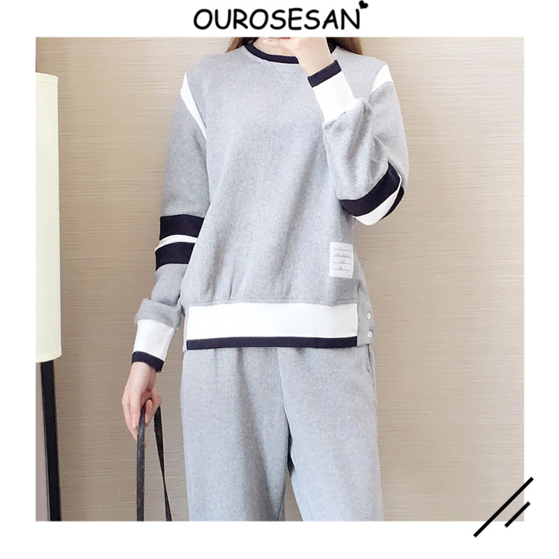 OUROSESAN leisure sports suit women's winter plus velvet belly age reduction two-piece fat mm fashion pants