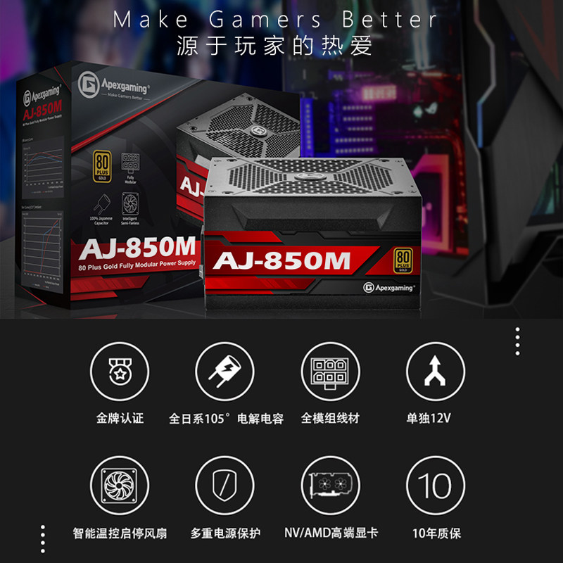 Mercantilist Esurge electric race AJ-850M rated 850W gold medal certified full module gaming desktop computer power supply