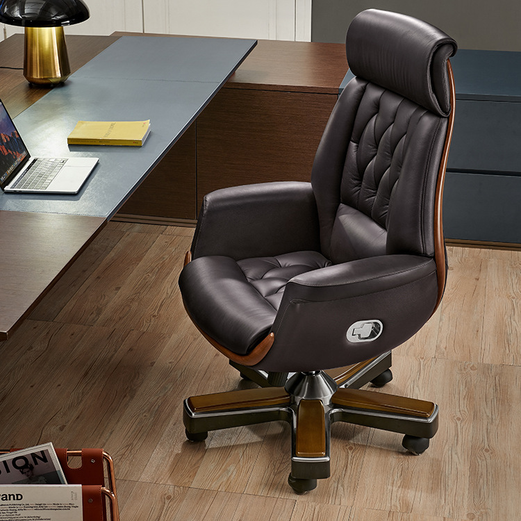 High-end business luxury boss chair genuine leather president office chair fashion large class chair study swivel chair can lie cowhide