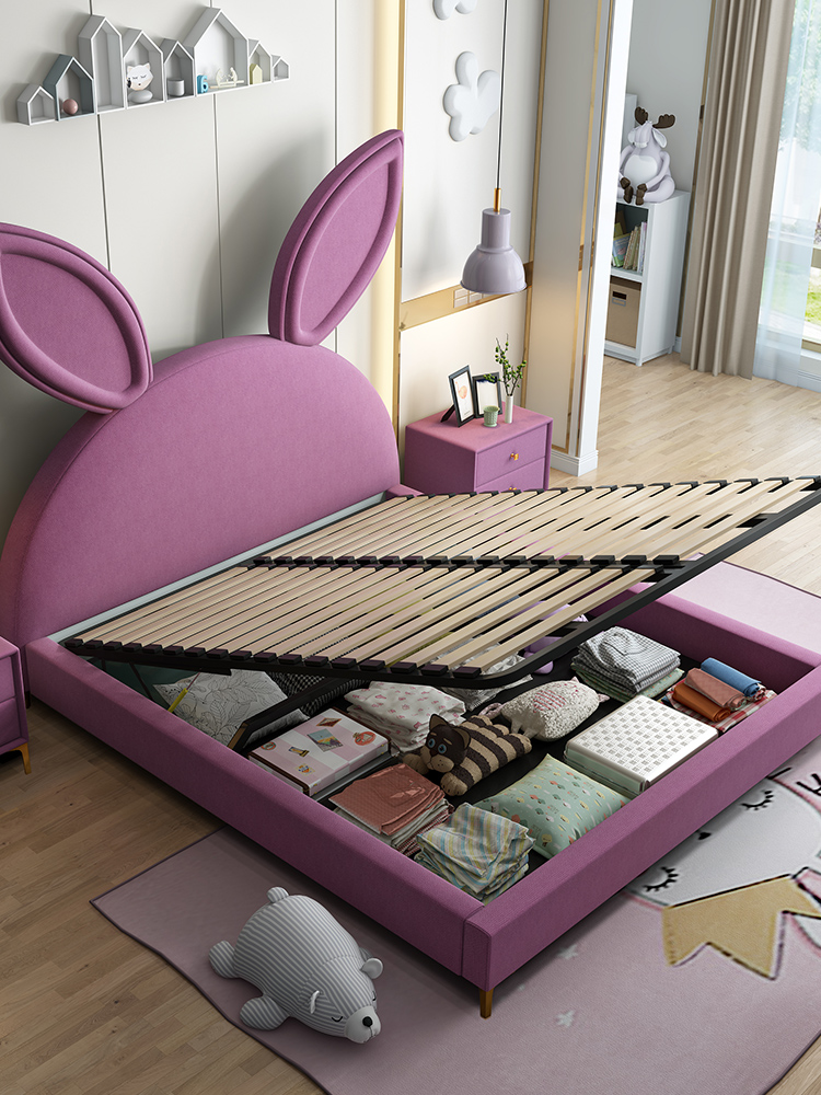 Simple children's fabric bed 1 5m girl princess bed ins net red child 1 2m single bed boy storage