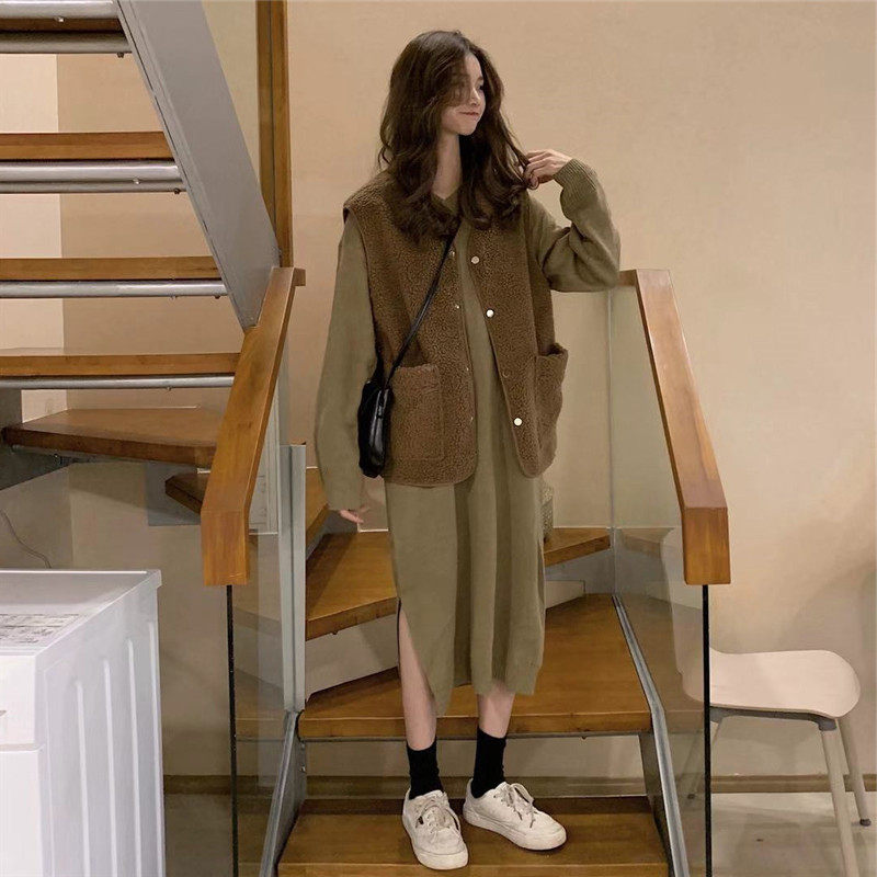 Light curry colour Machia single piece brown curry horse chia single piece (net red fashion 100 lap jacket) black sweater single piece (knitted temperament small sub) card its colour sweater single piece (Chauder 100 hitch