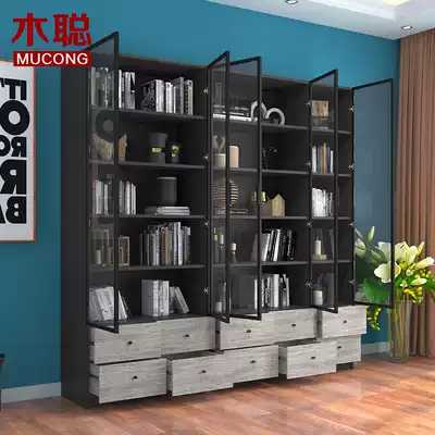 Mu Cong simple bookcase with glass door Nordic fashion bookcase office storage bookcase free combination customization 069