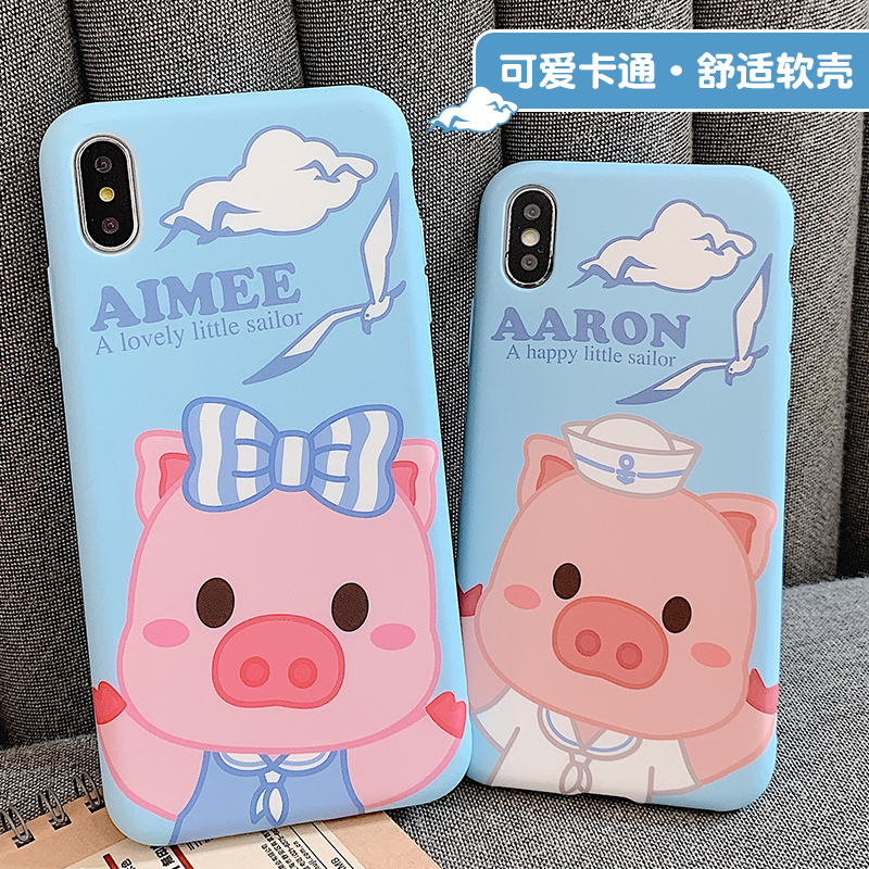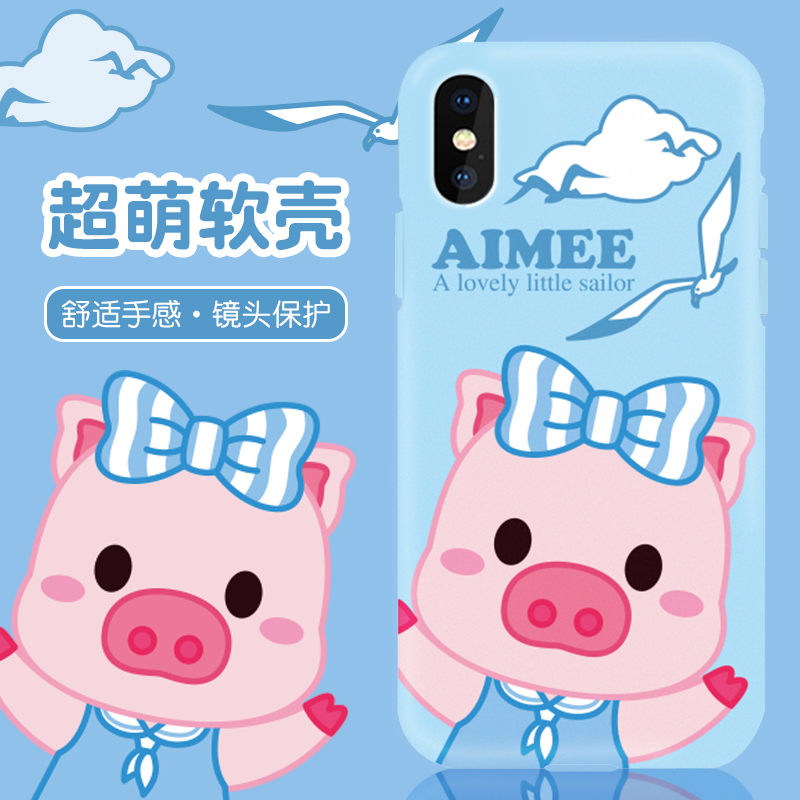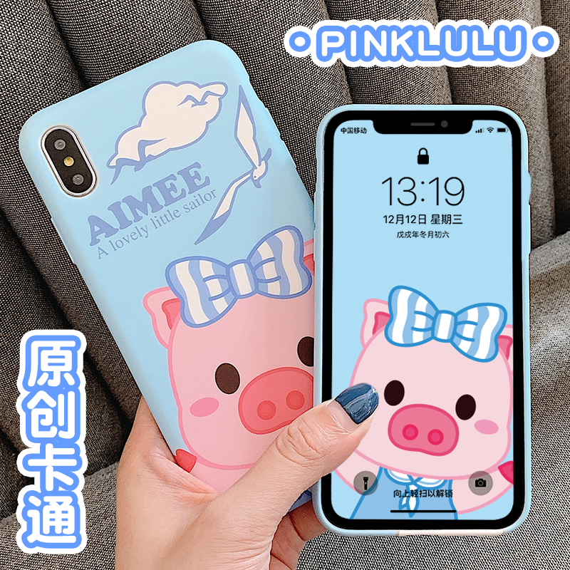 Pinklulu pig small snore iphonoXS mobile phone protective shell 7P navy wind 8plus cartoon cute apple MAX soft cute