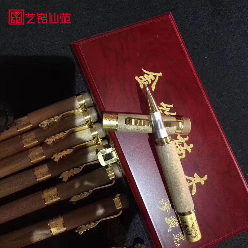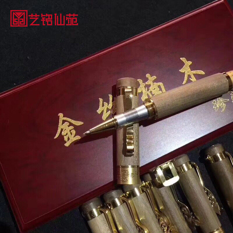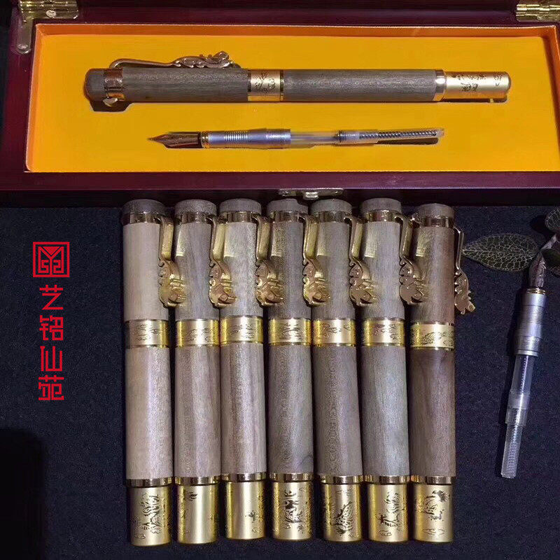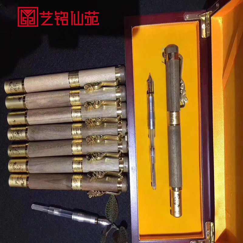 Gold Silk Nan Detached House Old Stock Dragon Head Dual-use Pen Solid Wood Sign Pen Adult Pen Business Office Use Gift Gift Packaging Box