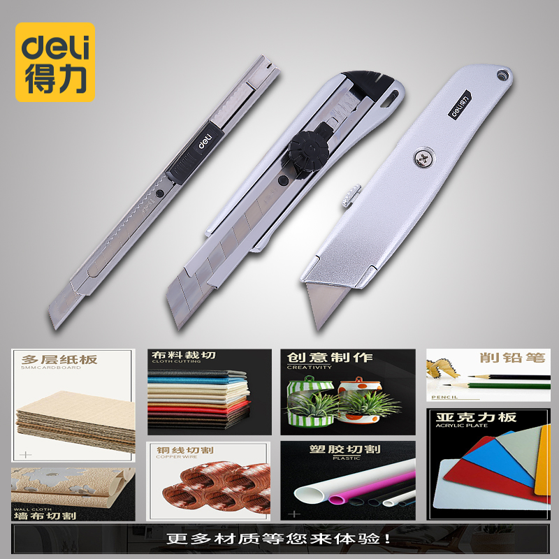 Deli utility knife Small film wallpaper knife Heavy duty all steel thickened large blade Art students special paper cutter