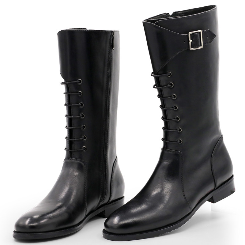 19 new high-top men's shoes high boots leather buckle casual long boots riding boots men's leather boots middle boots
