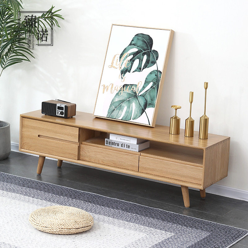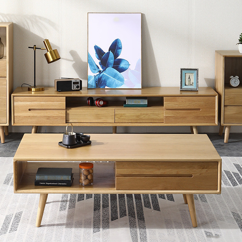 Nordic full solid wood TV cabinet Tea Table Combo Small Family minimalist Hyundai Fitted Oak Log Living Room TV Cabinet