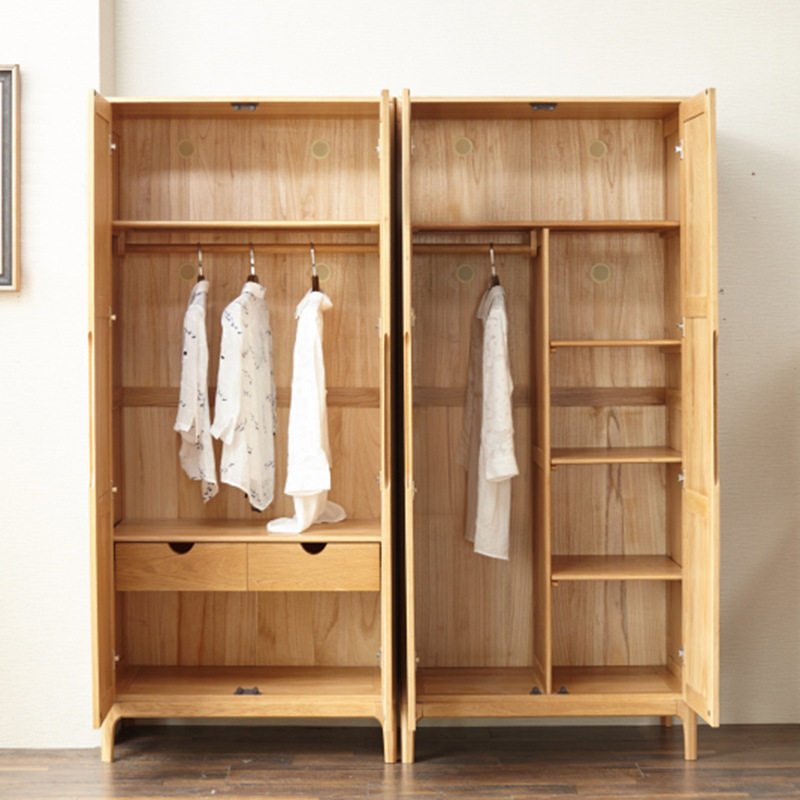 Nordic whole-solid wooden wardrobe small household log container modern minimal flat door oak multi-function large closet