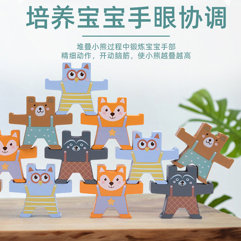 Children's wooden bear balance game 5 female treasure Kindergarten size middle class building blocks building toys for 3-6 year old boys